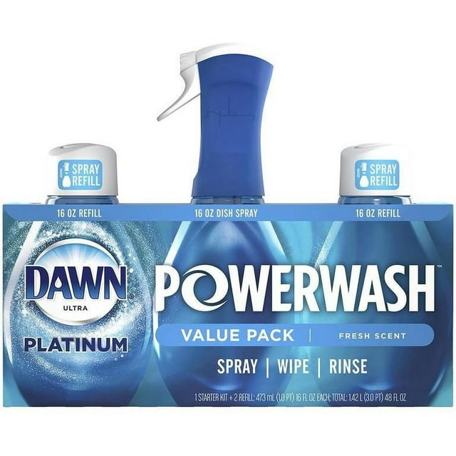 - Solo rocíe, limpie y enjuague! El juego de recambio y spray para platos Dawn Platinum Powerwash es la forma más rápida y sencilla de limpiar sobre la marcha. Simplemente rocíe, limpie y enjuague para adelantarse al desorden y terminar más rápido.