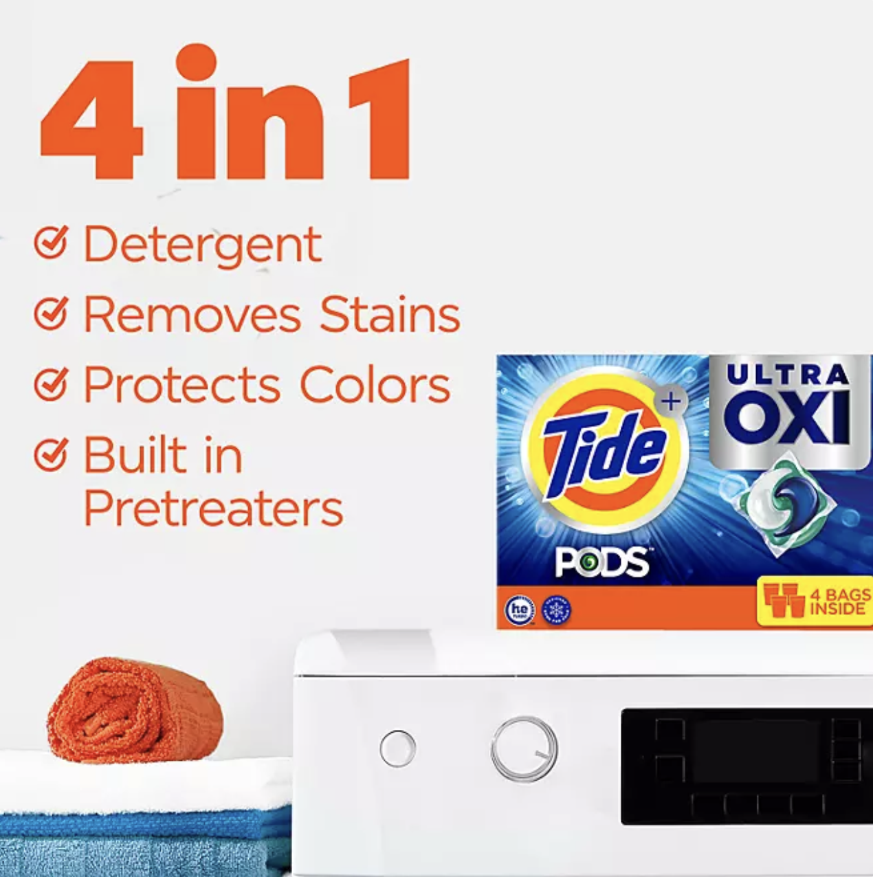 Cómo puede algo tan pequeño ser eficaz contra manchas tan viejas y fijas? La respuesta es sencilla: porque es Tide. Las manchas más difíciles pueden asustar fácilmente a algunas personas, incluso pueden hacer que las personas tiren la ropa pensando que no se pueden salvar. Los Tide PODS + Ultra Oxi Liquid Detergent Pacs fueron desarrollados específicamente para estas situaciones: para eliminar las manchas más difíciles. Con pretratadores incorporados, Tide PODS Ultra OXI puede liberar su poder Tide contra estas manchas y hacer tu día mucho más fácil al quitarte estas tareas pesadas de encima. Las manchas difíciles no lo son tanto para Tide; La prueba está en los resultados. Lo sorprendente está en los detalles: es una solución para lavado de ropa 4 en 1 con jabón detergente, quitamanchas, protector de color y pretratadores incorporados para combatir las manchas al siguiente nivel. La película especial permite que la tecnología de múltiples cámaras se disuelva tanto en agua fría como caliente, mientras que Smart Suds, de rápido colapso, ataca las manchas difíciles. Tide PODS Ultra OXI funciona tanto en lavadoras HE como estándar de carga superior y frontal.